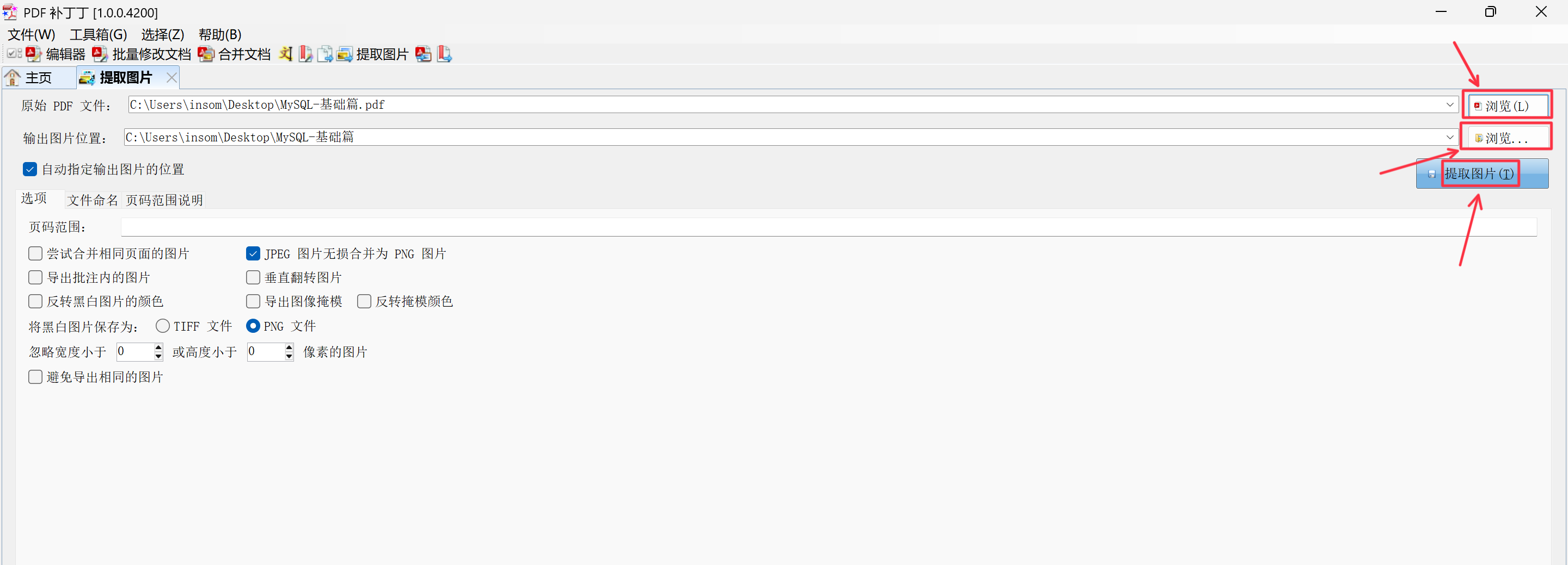 - 提取范围:如果你只需要提取特定页码的图片,可以在相应选项中设置页码范围。